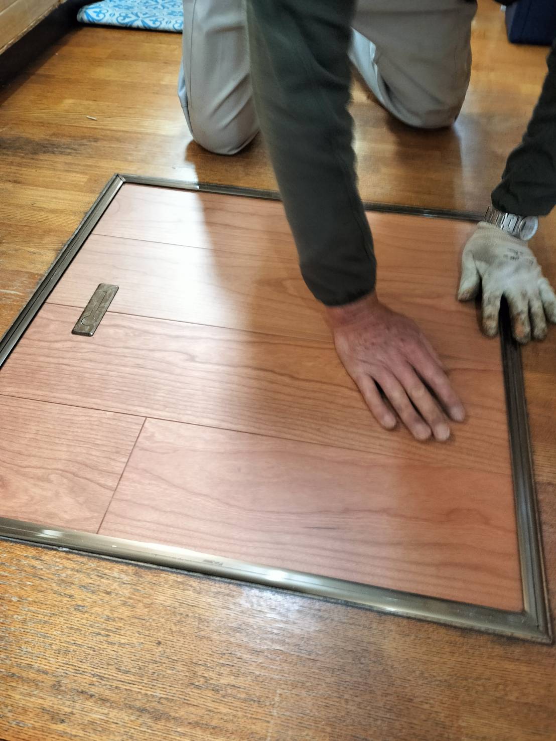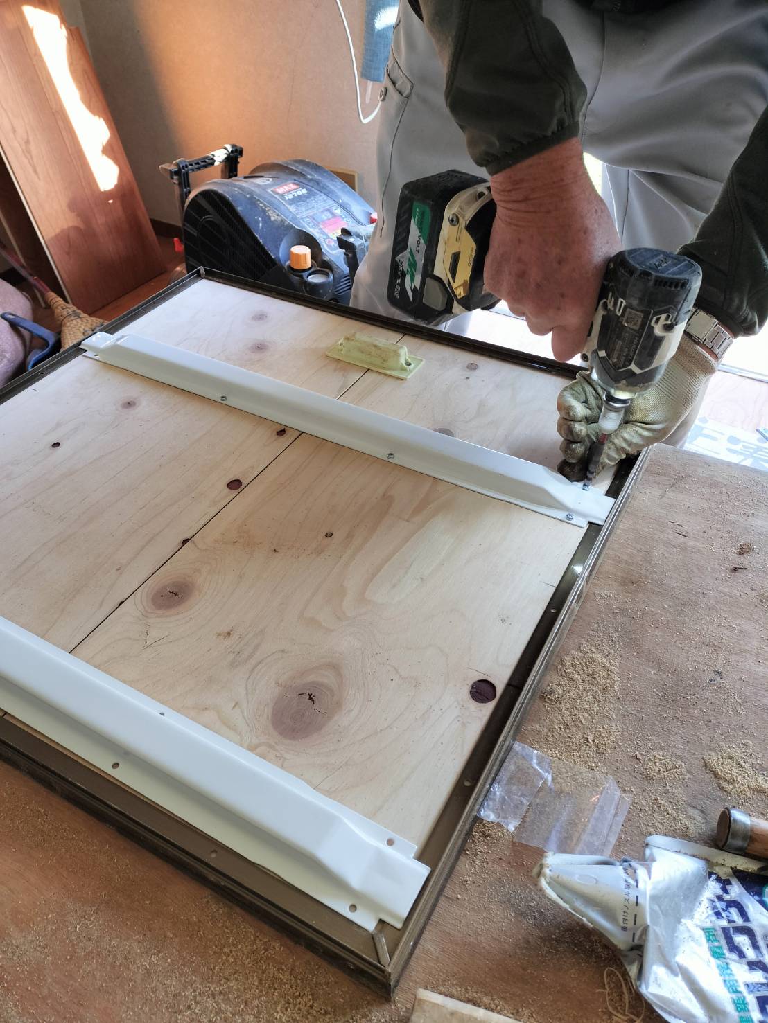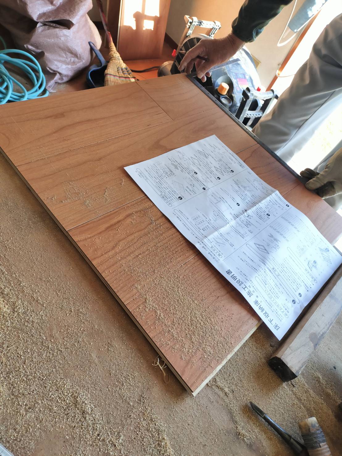 床下収納枠内に納まるサイズに板を加工します
